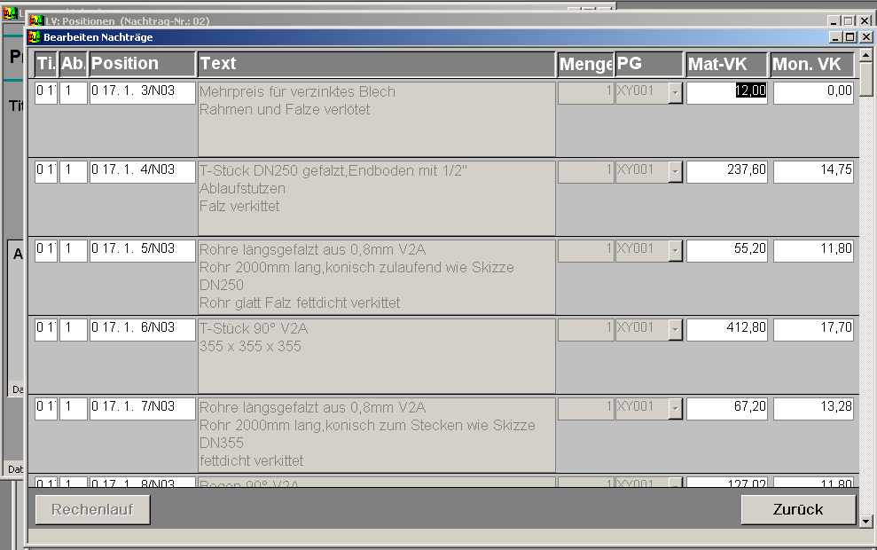 Erfassen VK-Preis Nachtrag (Nachtragsangebot)