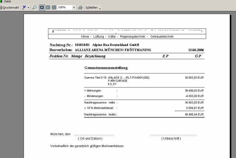 Ausdruck Nachtragsangebot (Nachtragsangebot)