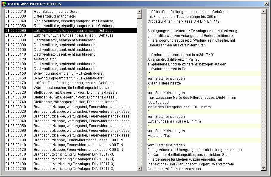 Erfassen Textergänzungen (Kalkulation)